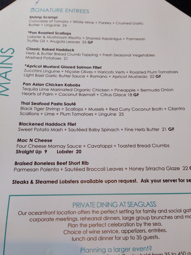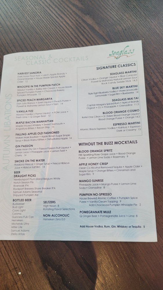 Seaglass Restaurant & Lounge, located in Salisbury Beach, offers a picturesque setting with spectacular ocean views. The menu features a range of New American cuisine with a focus on seafood. Customers praise the quality of food, with highlights including the delicious fish tacos, baked haddock with crunchy topping, and amazing mussel appetizer. The atmosphere is described as classy and the service as efficient and attentive. While the prices may be on the higher side, the food is deemed worth it by patrons. The restaurant offers vegan and vegetarian options, making it suitable for various dietary preferences. With a full bar, outdoor seating, and free Wi-Fi, Seaglass provides a comfortable dining experience. Despite occasional delays in food service, the overall experience is highly rated, especially for special occasions.